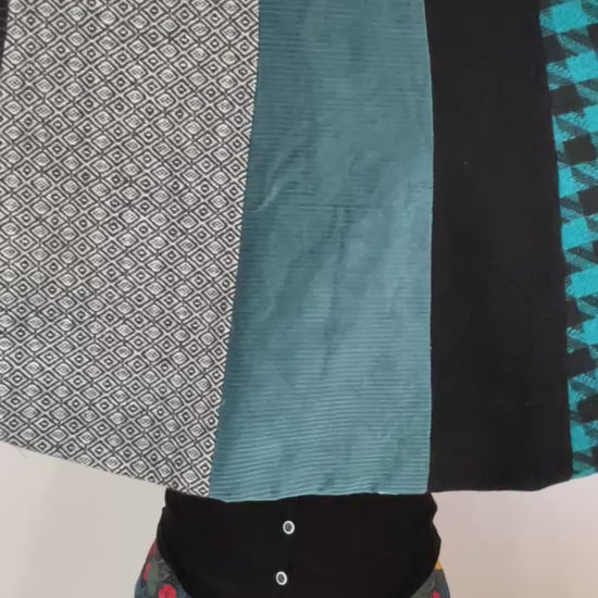 Réalisé uniquement avec des chutes de tissu pour constituer une sorte de patchwork de tissus chauds (velours et lainages) aucun modèle n'est semblable à un autre. Pour plus de confort, il est doublé en coton.