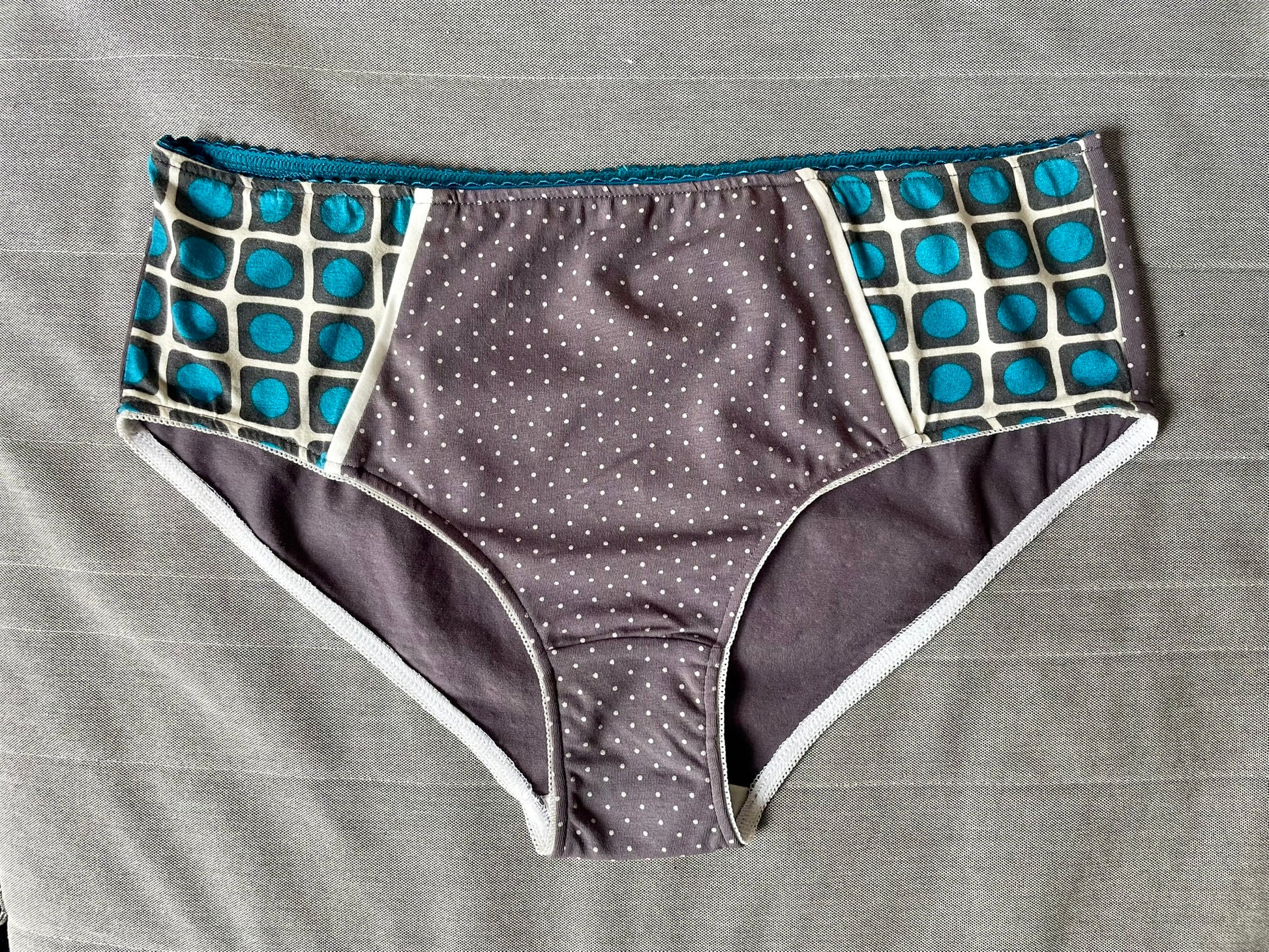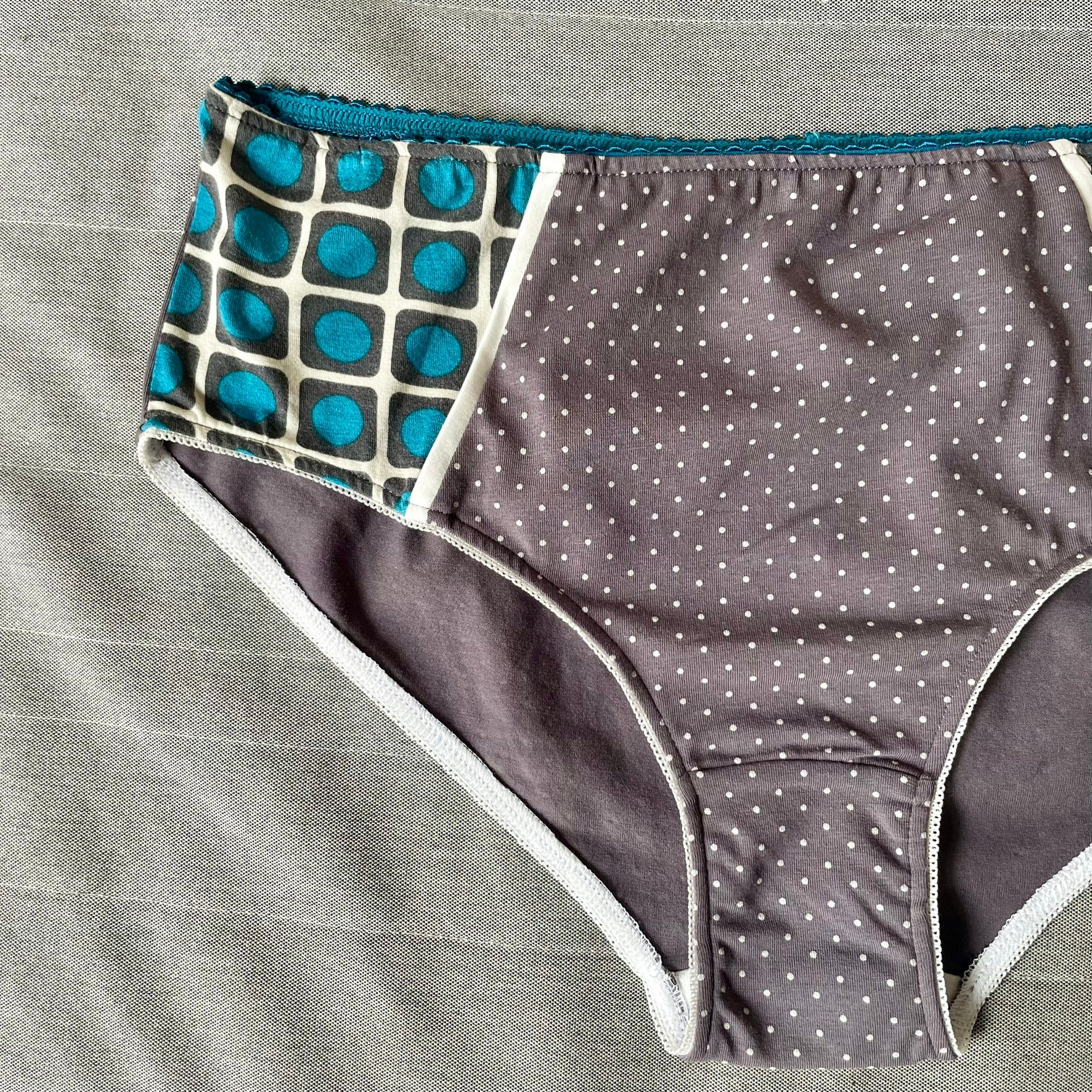 Culotte gris, turquoise et blanc à pois et à motifs géométriques