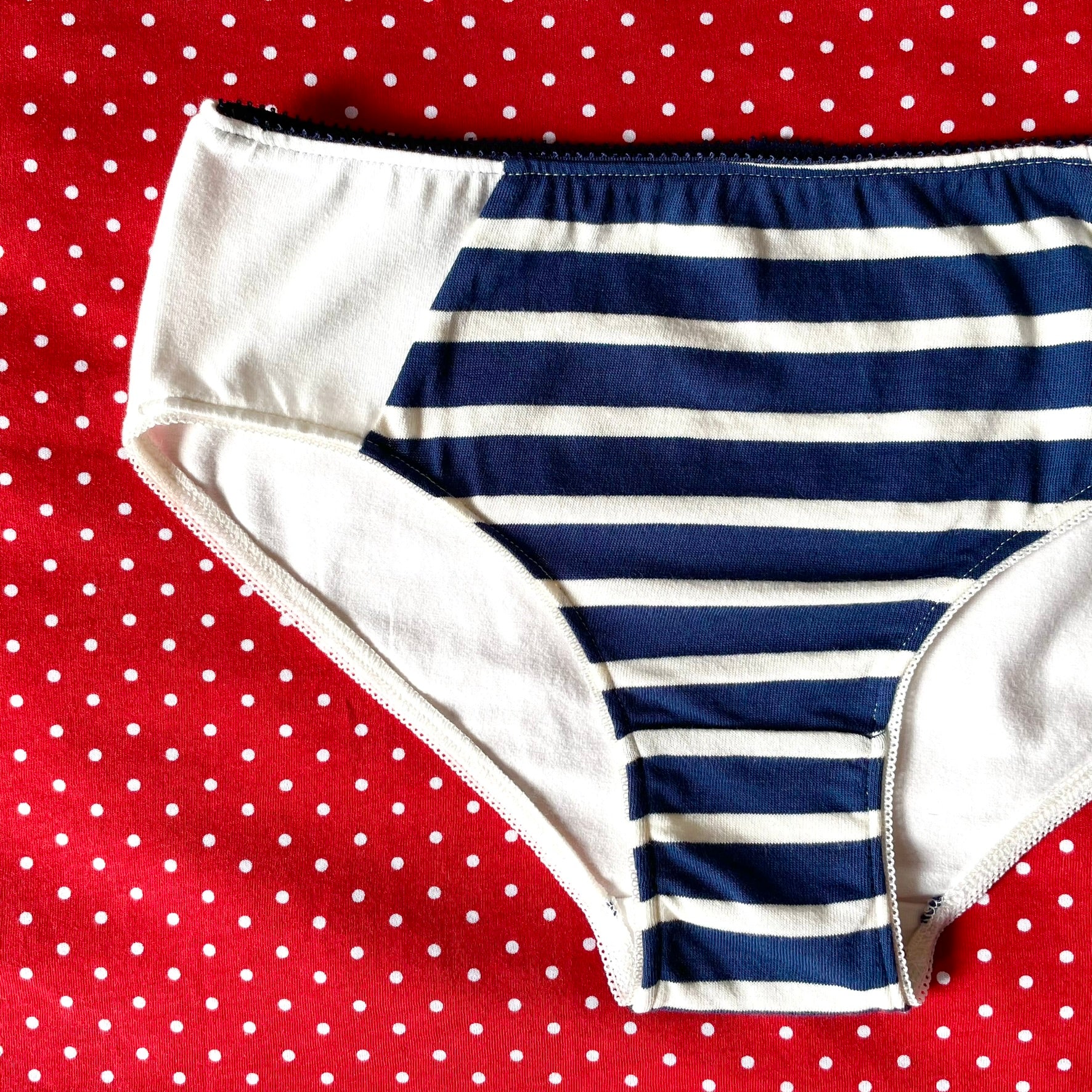 Culotte femme en coton et élasthanne. Modèle Marinière, réalisé à partir de tissu rayé Saint James.