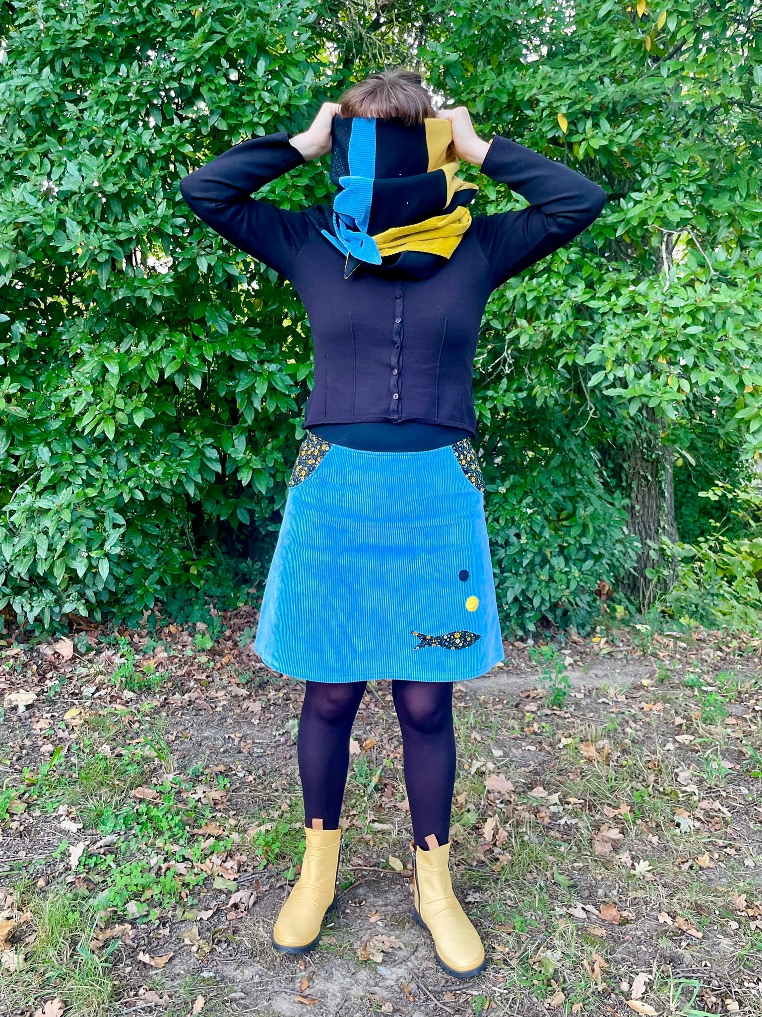 Jupe en velours côtelé bleu clair et jaune