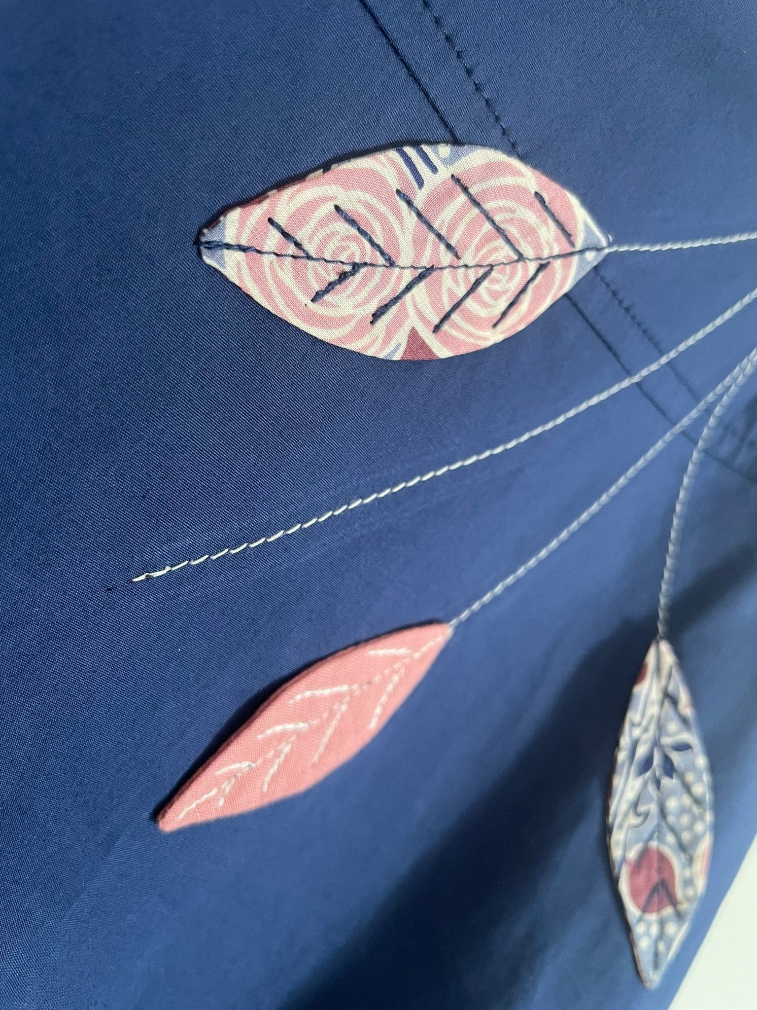Appliqués feuillages en haut de la jupe.